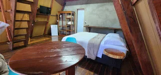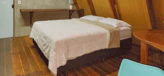 Cada chalé possui duas camas de casal, e a possibilidade de adicionar camas auxiliares para garantir o conforto de todos os hóspedes.